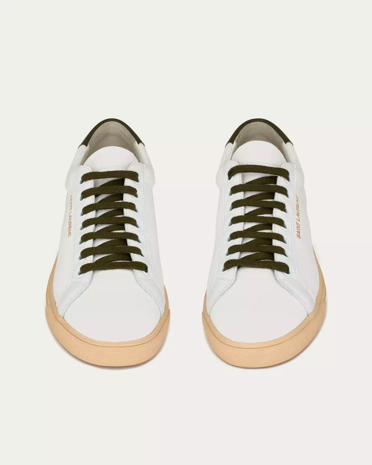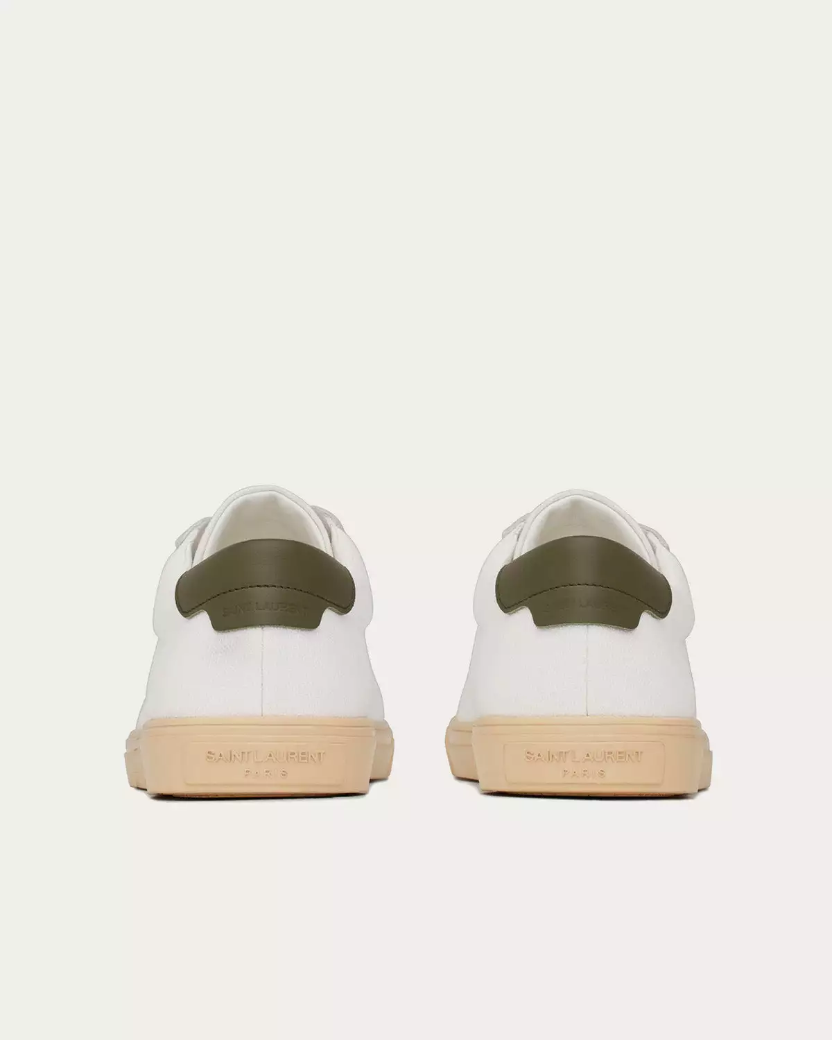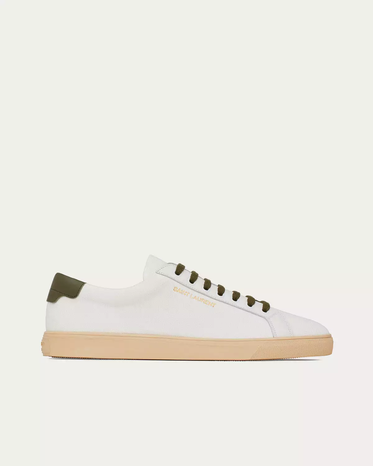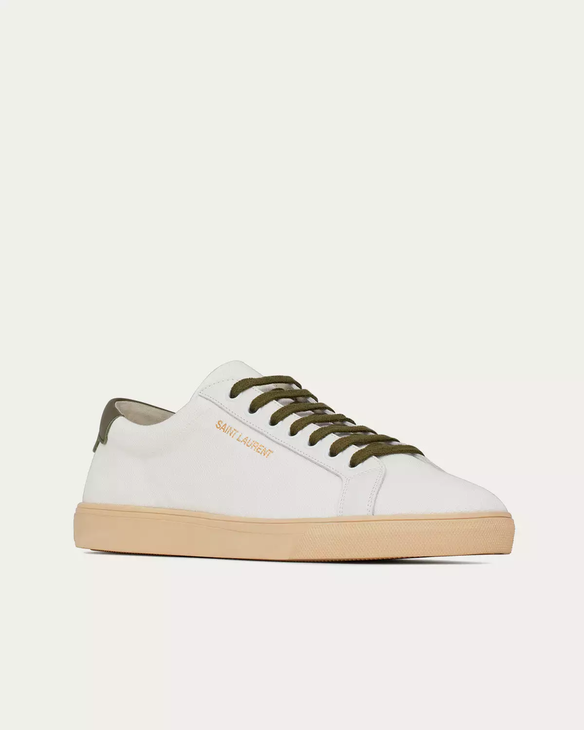 Saint Laurent Andy Canvas & Leather White / Dark Green Low Top Sneakers