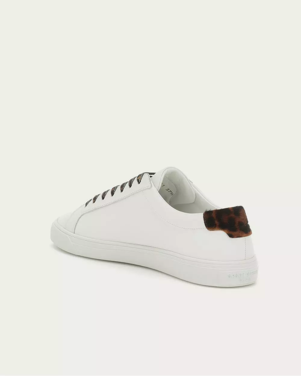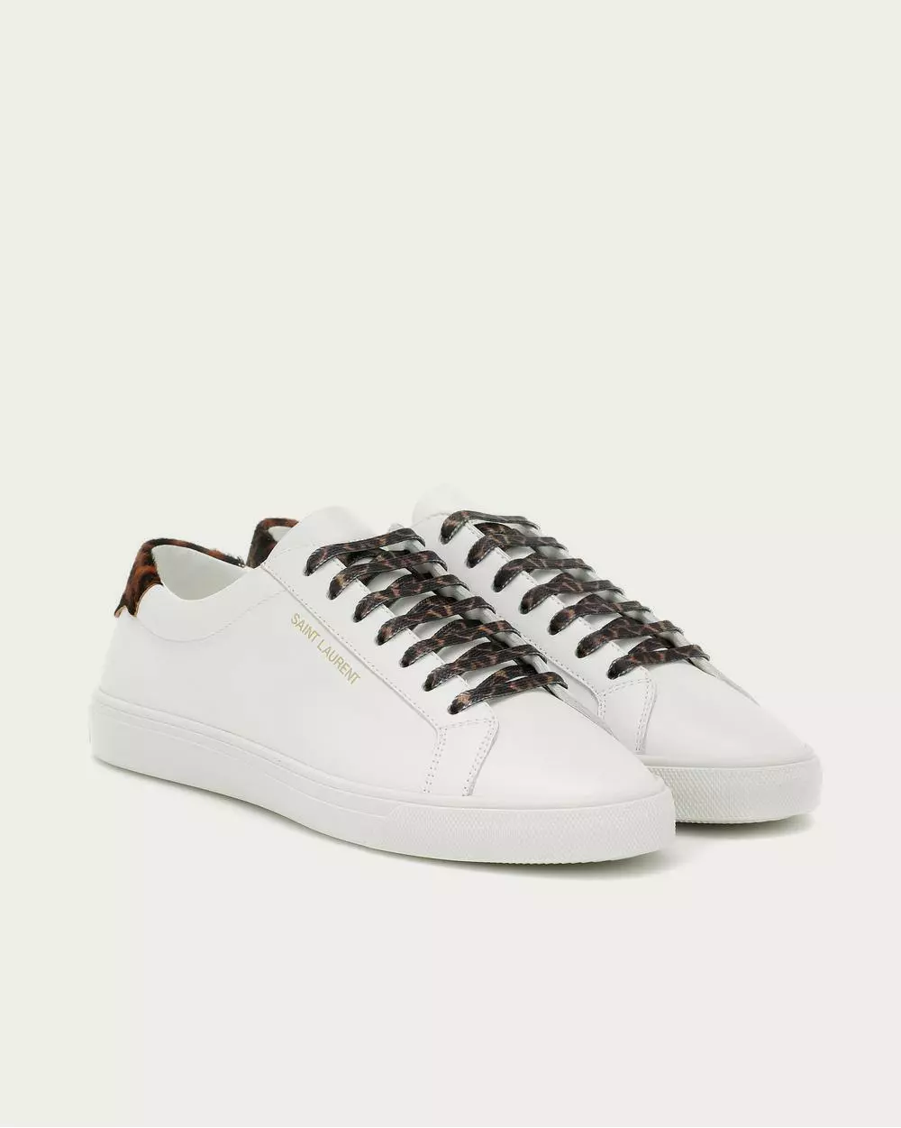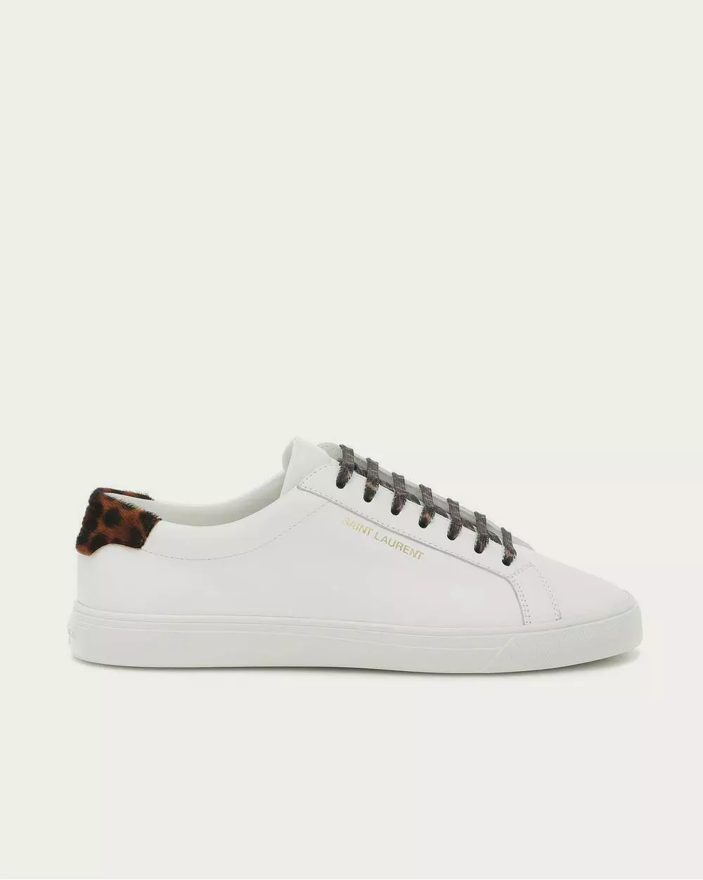 Presented here in crisp white with leopard print laces and a matching back stop, the Andy sneakers from Saint Laurent bring the label’s achingly cool appeal to off-duty dressing. The low-top design is crafted in Italy from smooth calf leather, the perfect canvas for the illuminated gold lettering. Put yours on heavy rotation with dresses and denim alike.