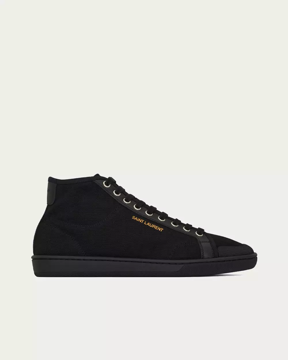 Mid-top laced sneakers made with organic cotton canvas, featuring a gold saint laurent inscription along the outer side and a saint laurent embossed back tab.