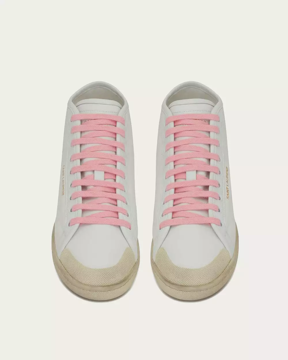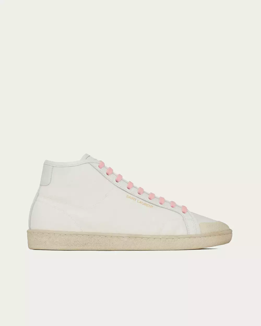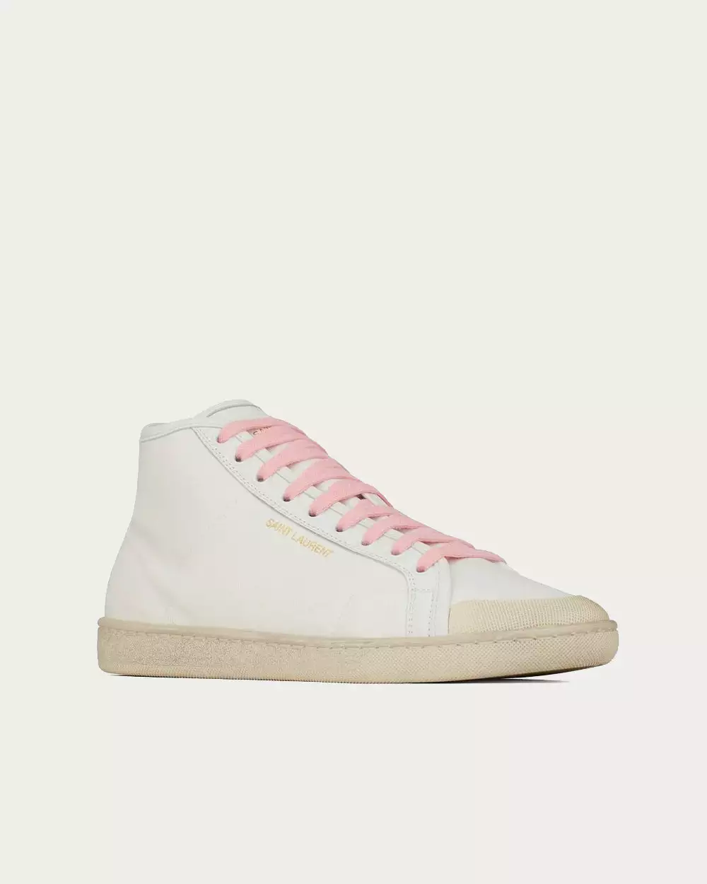 Court classic sl/39 mid-top sneakers in canvas and leathermid-top laced sneakers with a used-look sole made with organic cotton canvas, featuring a gold saint laurent inscription along the outer side and a saint laurent embossed back tab.