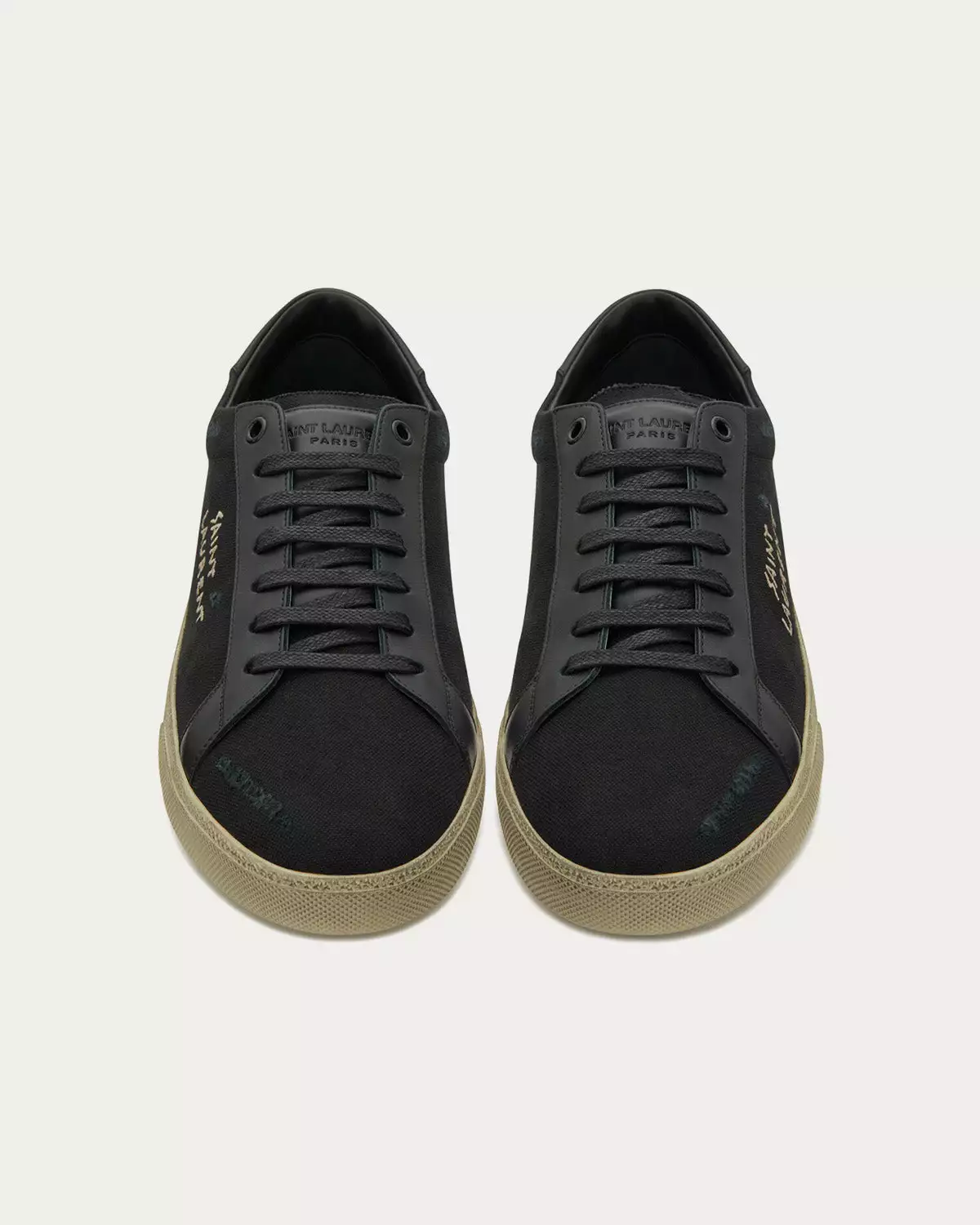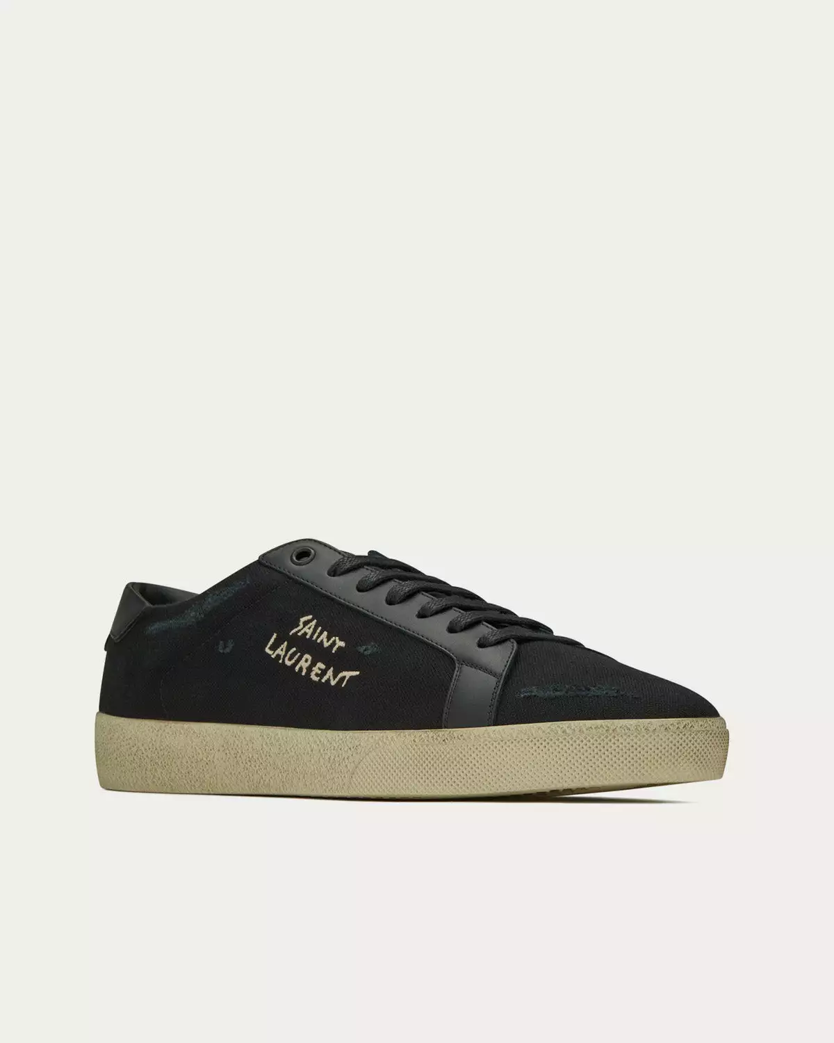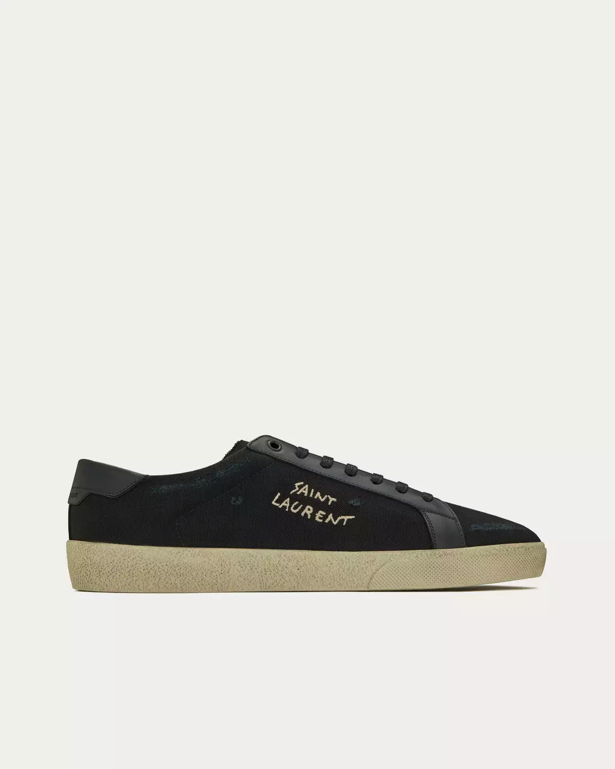Saint Laurent SL/06 Court Classic Embroidered Canvas & Smooth Leather Black Low Top Sneakers