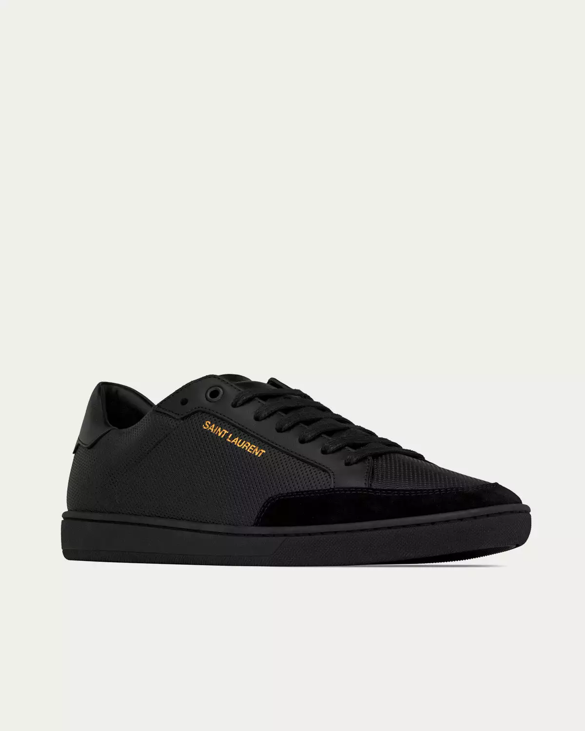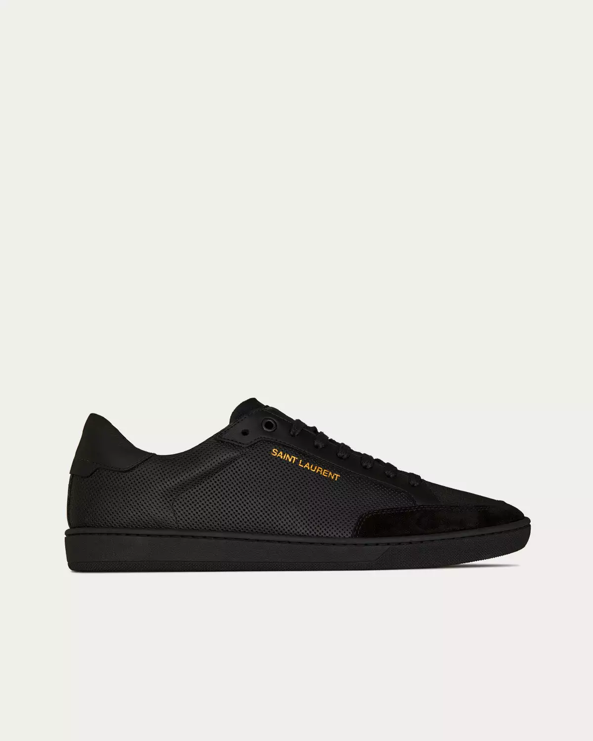 Saint Laurent SL/10 Court Classic Perforated & Smooth Leather Black Low Top Sneakers