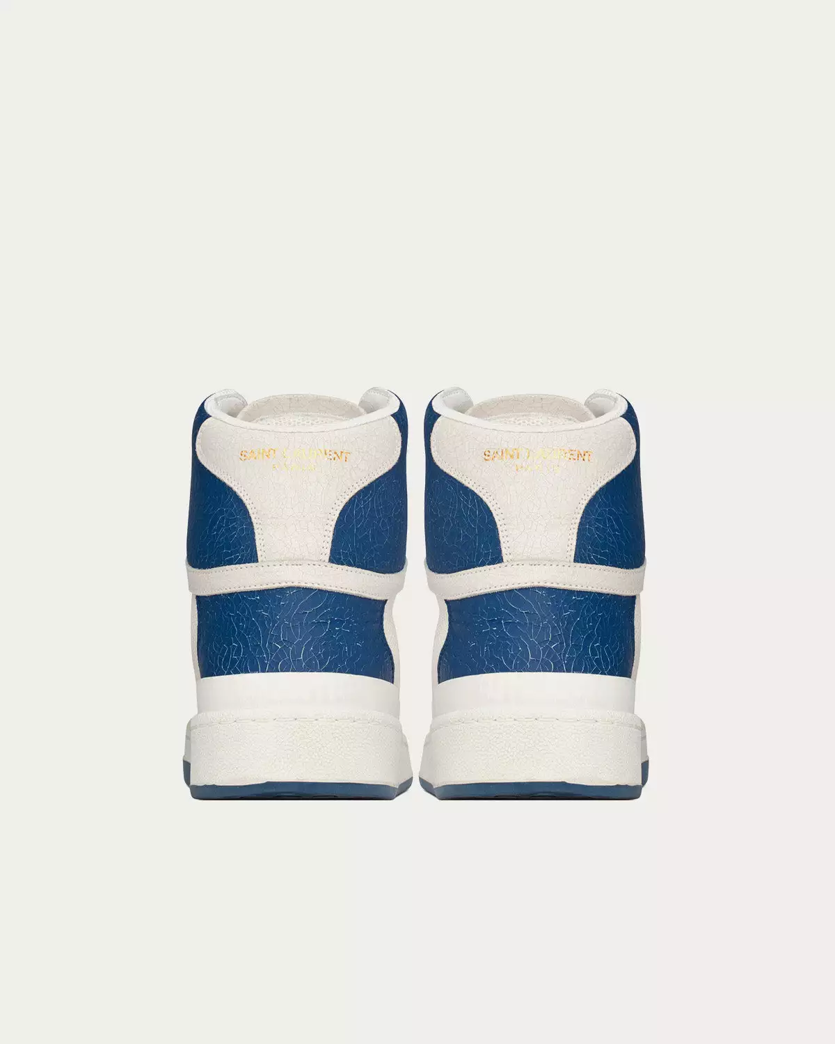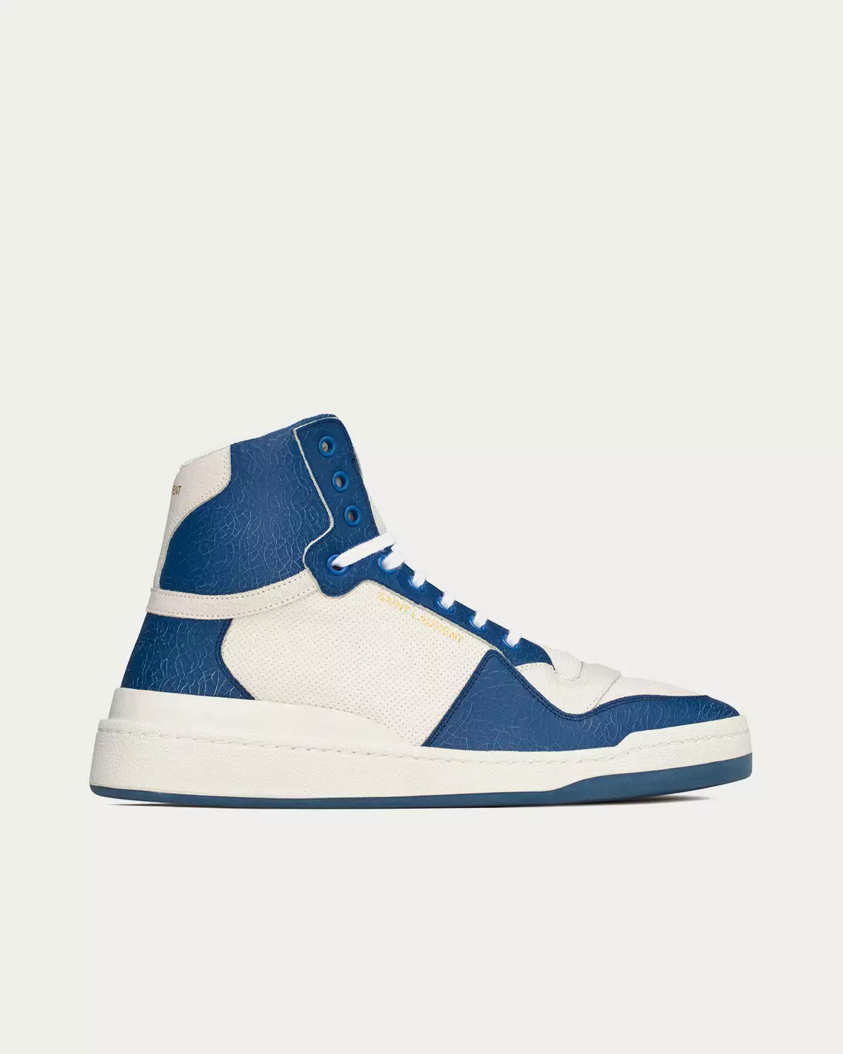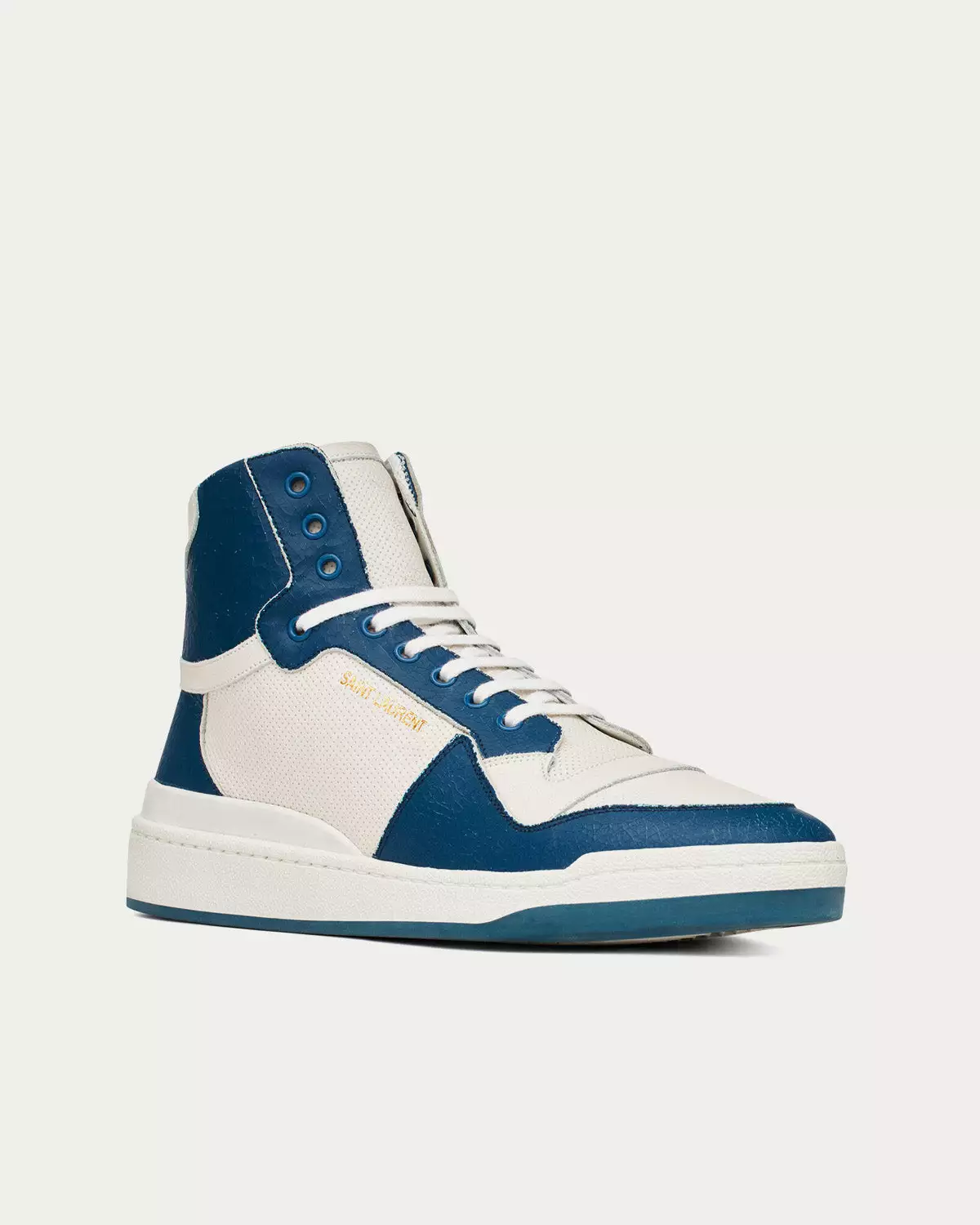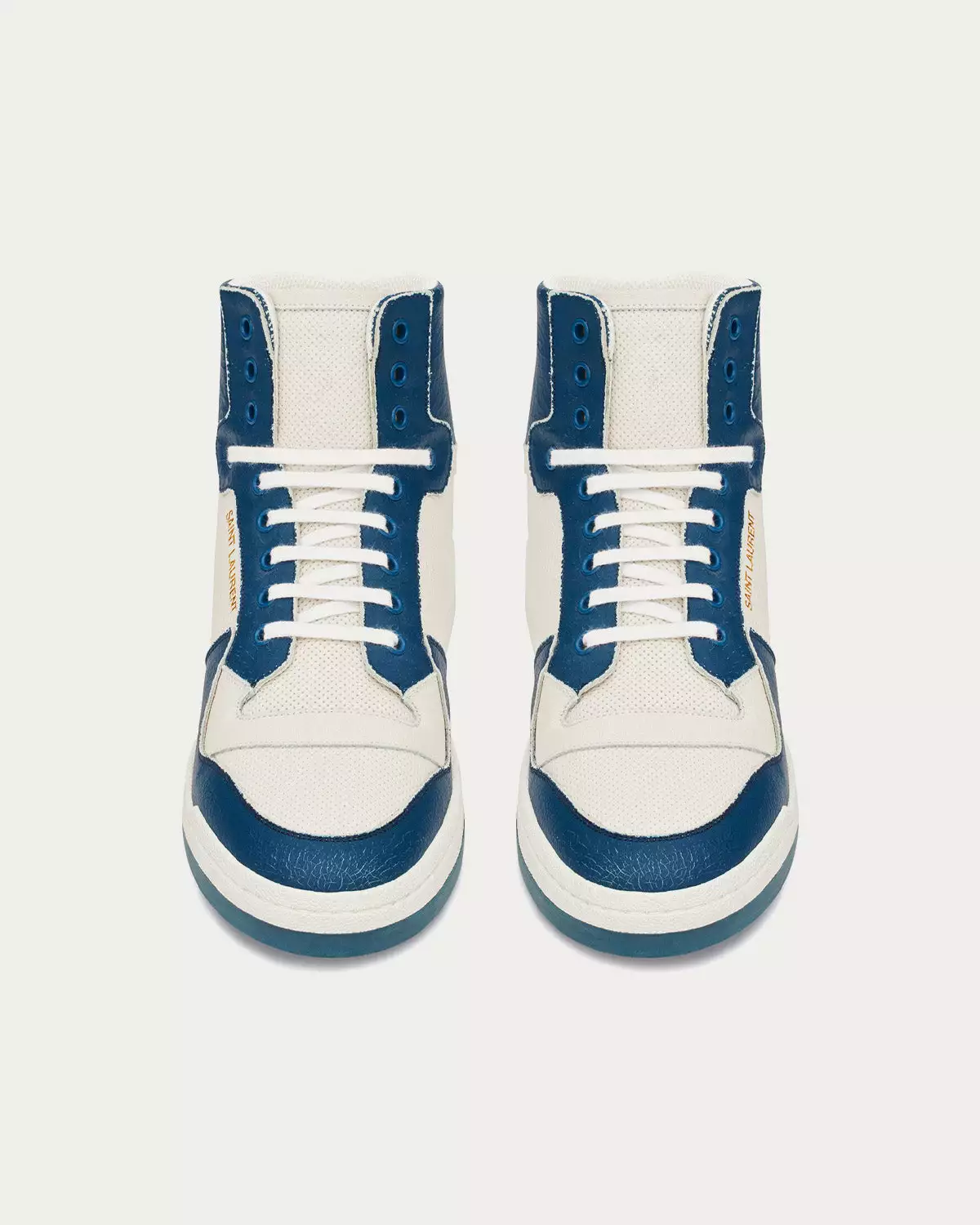 Saint Laurent SL/24 Perforated Leather Off-White / Light Navy Mid Top Sneakers