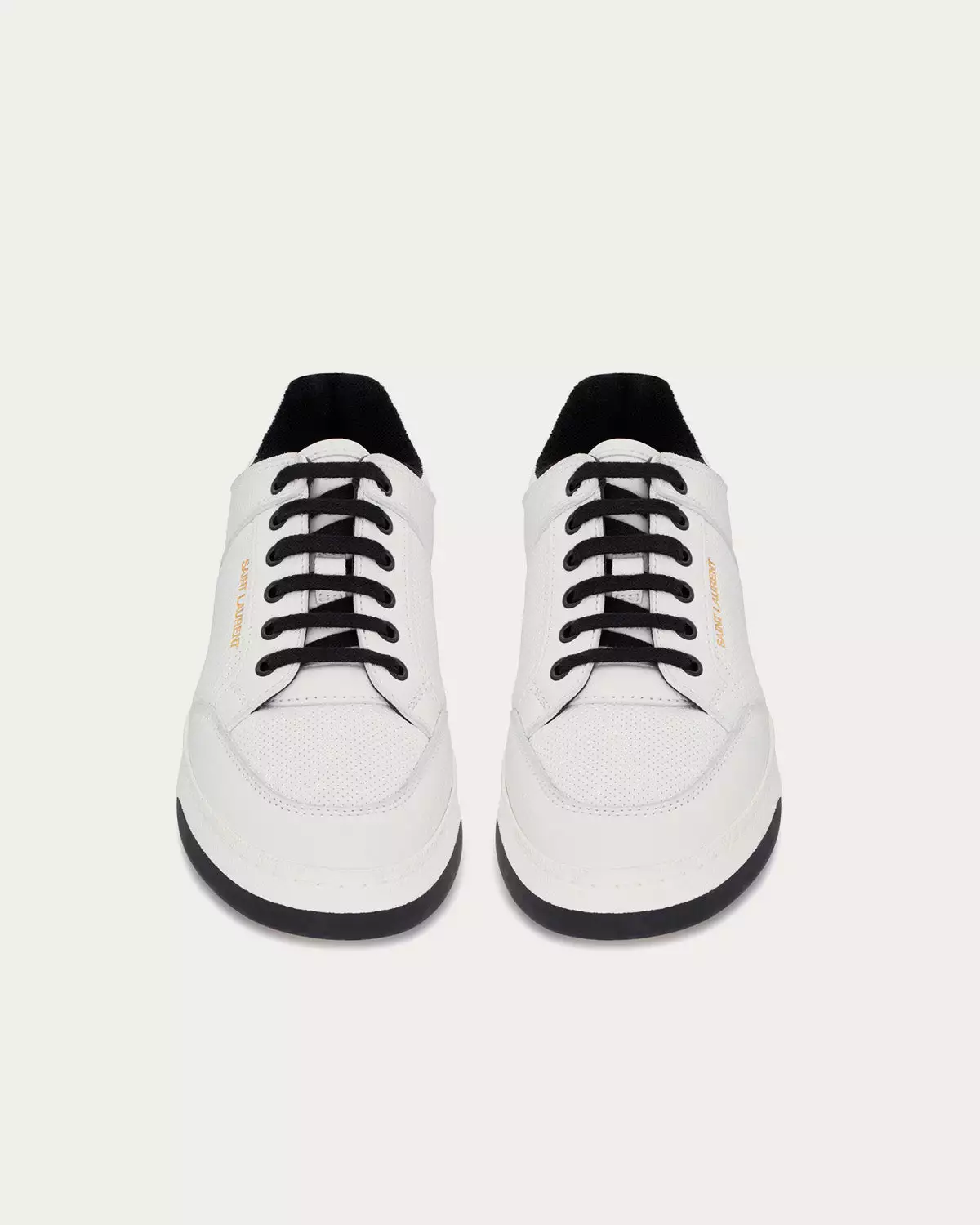 Saint Laurent low-top laced sneakers featuring perforated leather on the front panel, a gold-tone Saint Laurent signature across the pull tab and on the side.