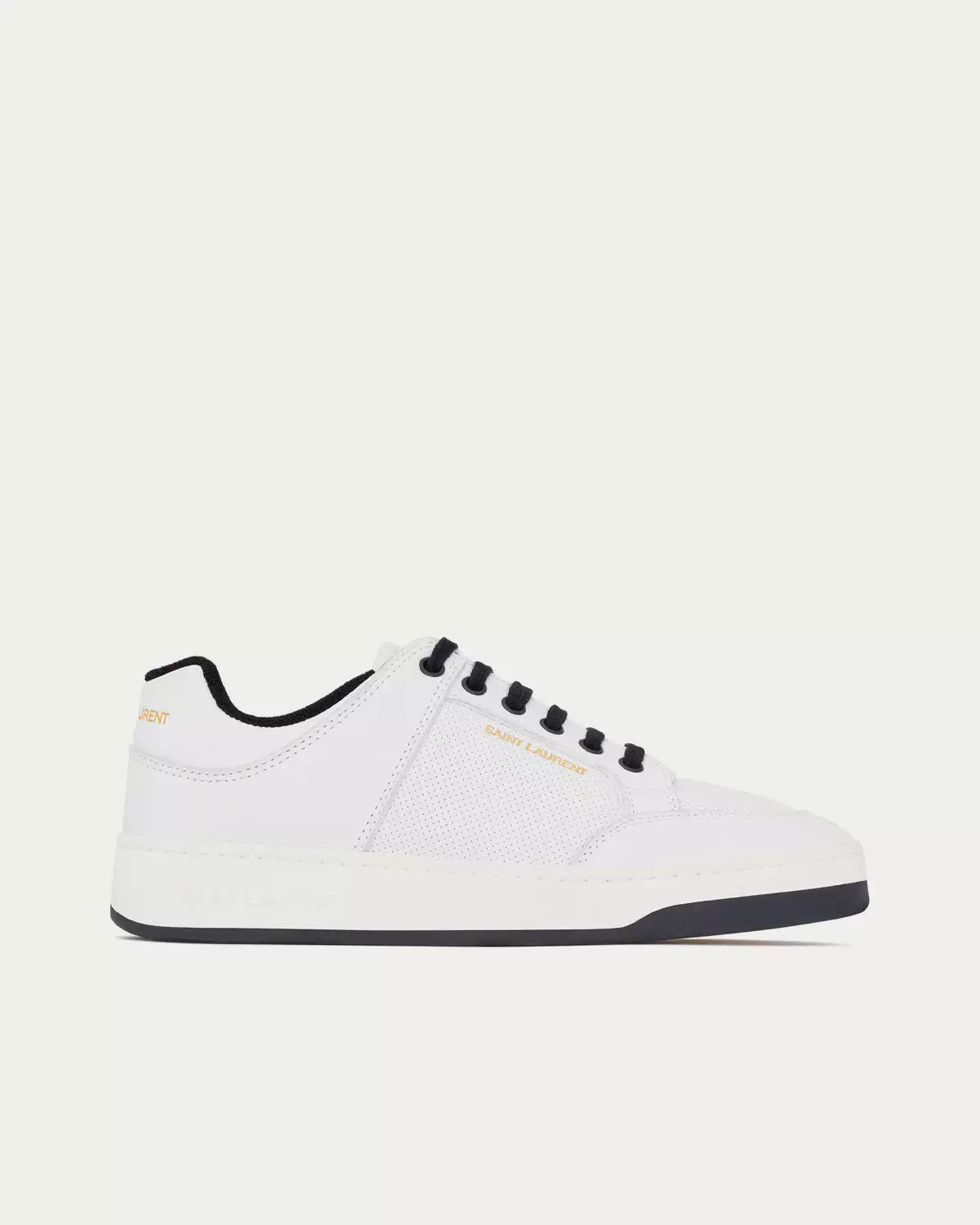 Saint Laurent low-top laced sneakers featuring perforated leather on the front panel, a gold-tone Saint Laurent signature across the pull tab and on the side.