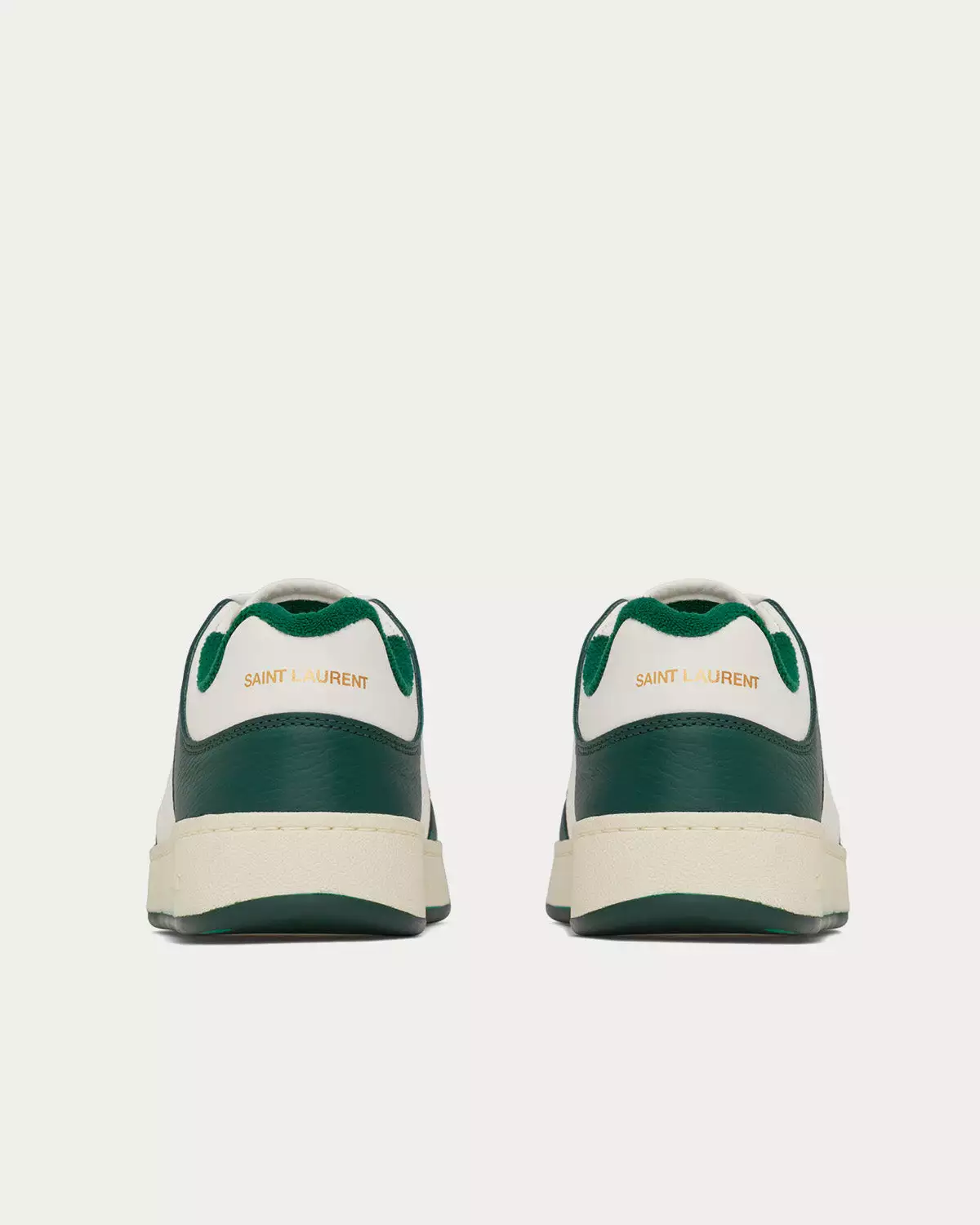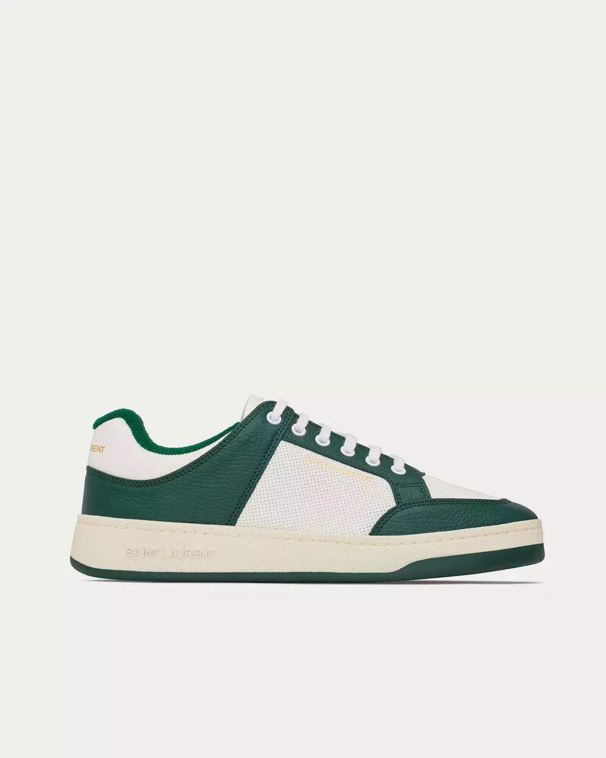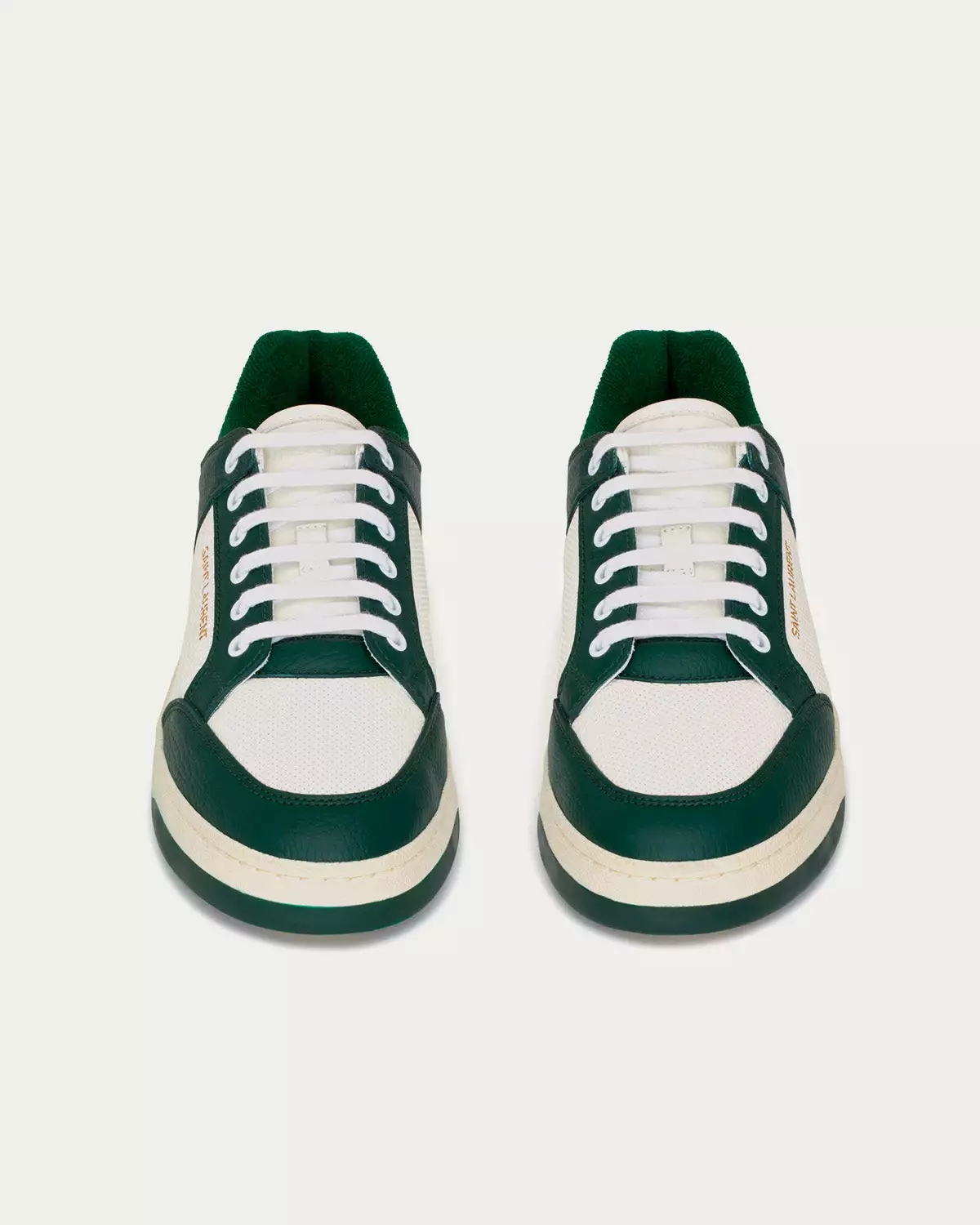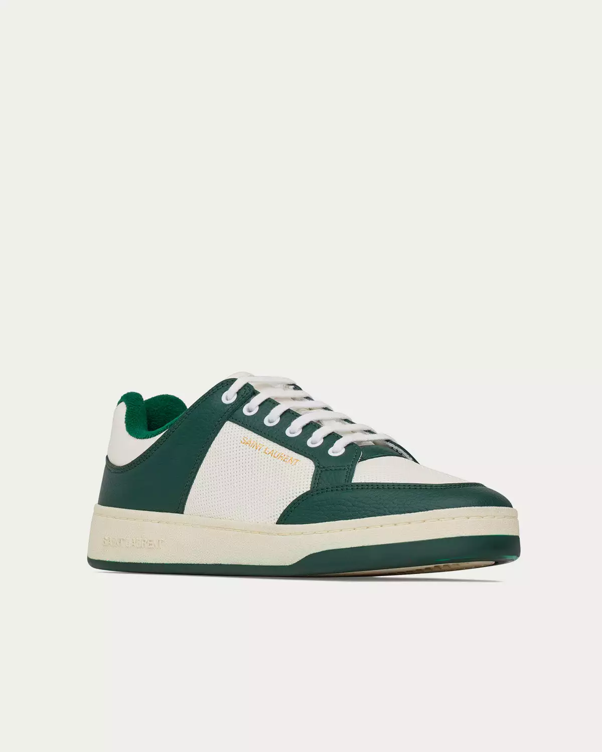 Saint Laurent SL/61 Smooth & Grained Leather White / Dark Green Low Top Sneakers