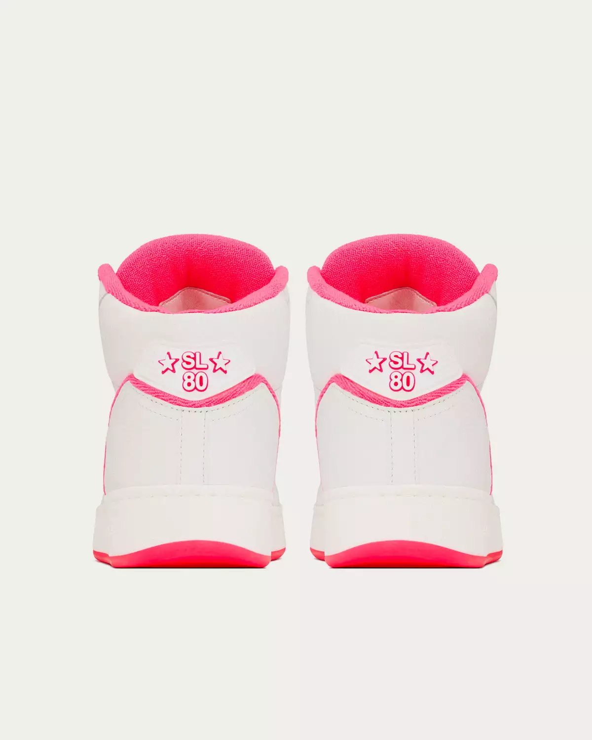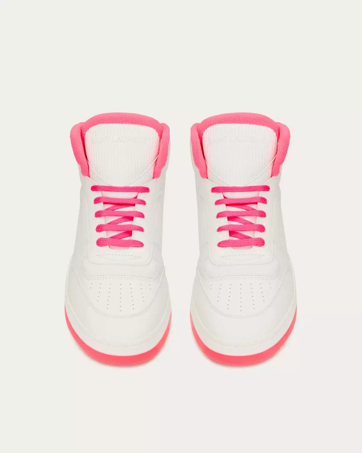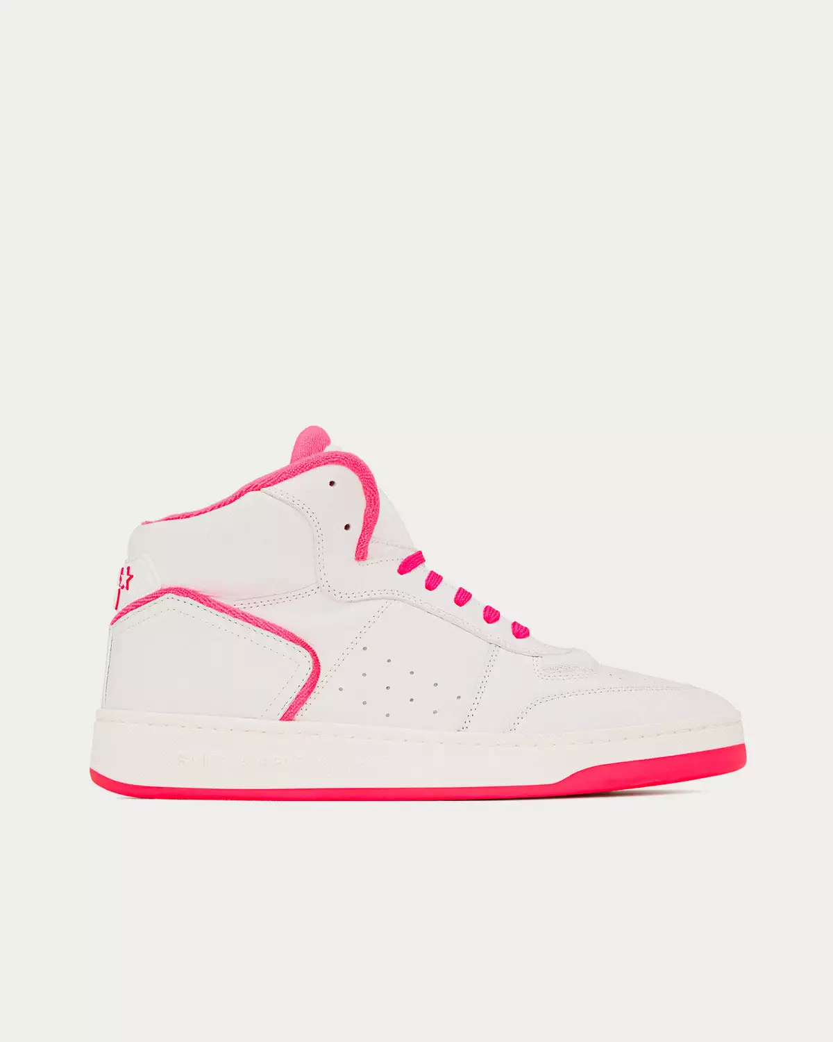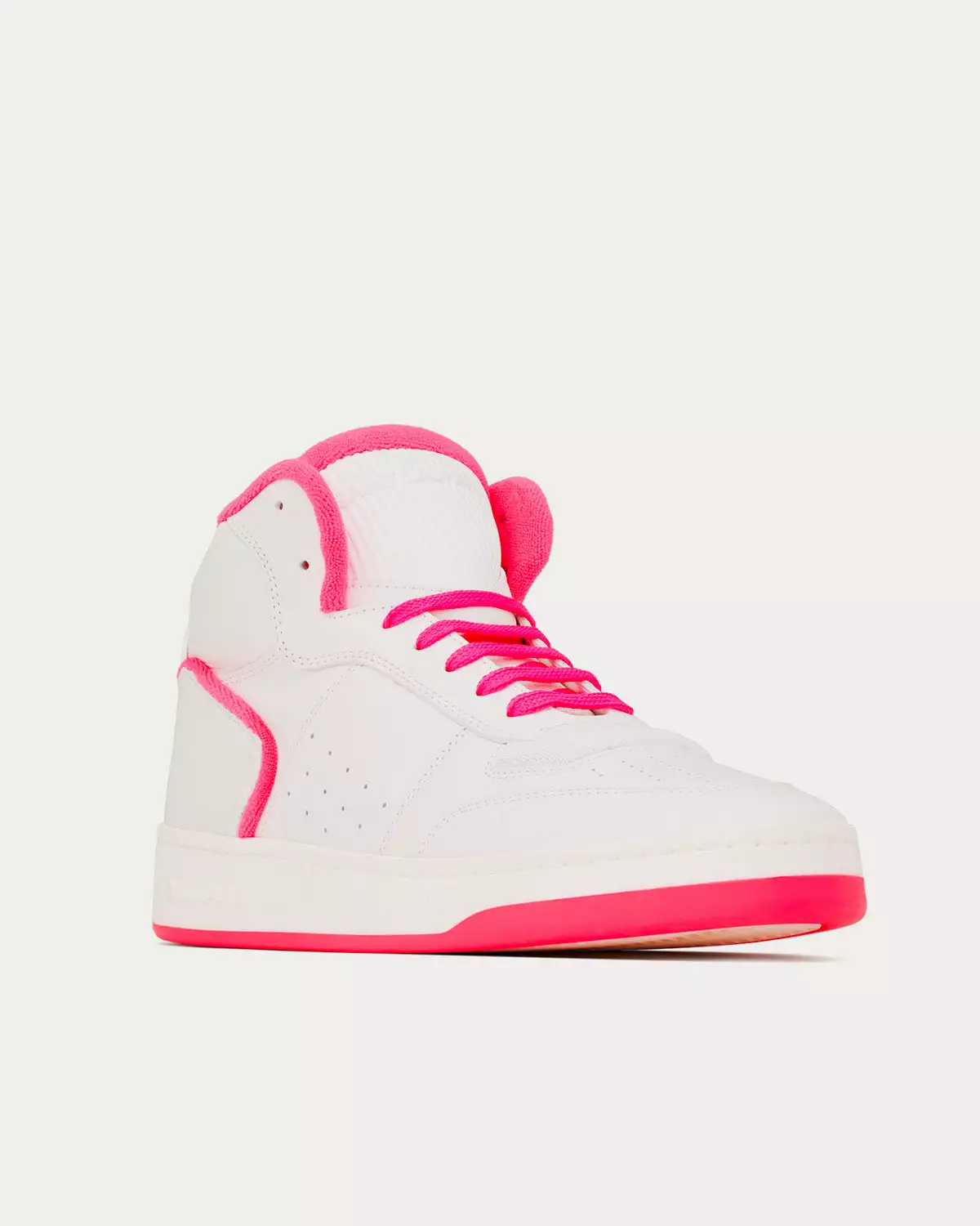 Saint Laurent SL/80 Smooth & Grained Leather Blanc Optique Et Rose Fluo Mid Top Sneakers