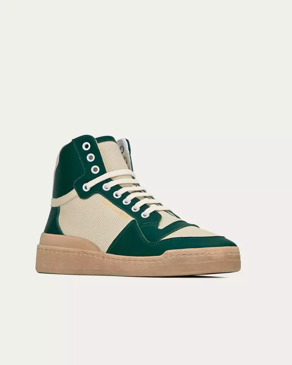Saint Laurent SL24 Vintage White / Freak Green Mid Top Sneakers
