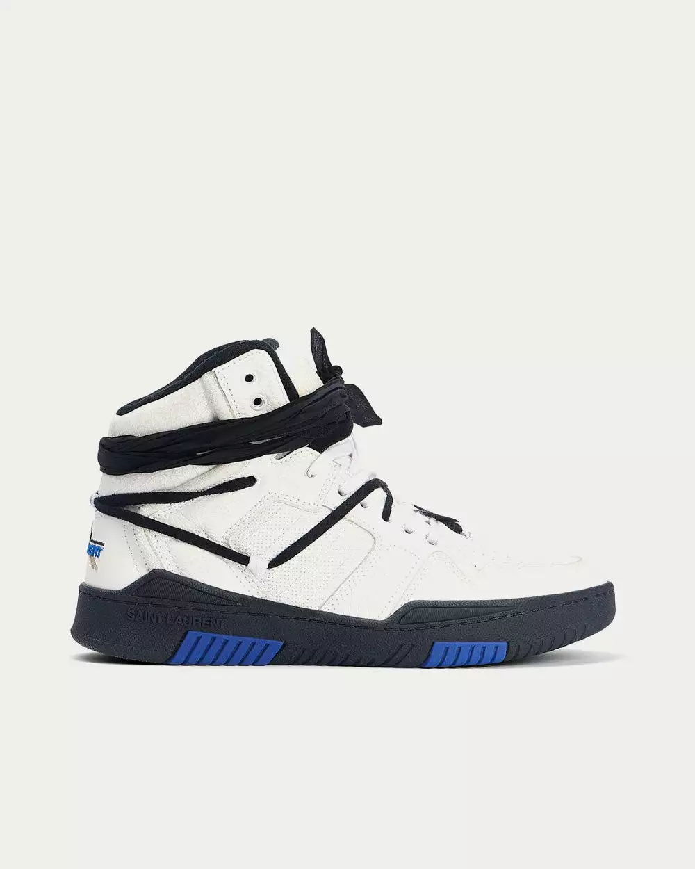 Saint Laurent Smith Grain Leather Blanc Et Bleu High Top Sneakers