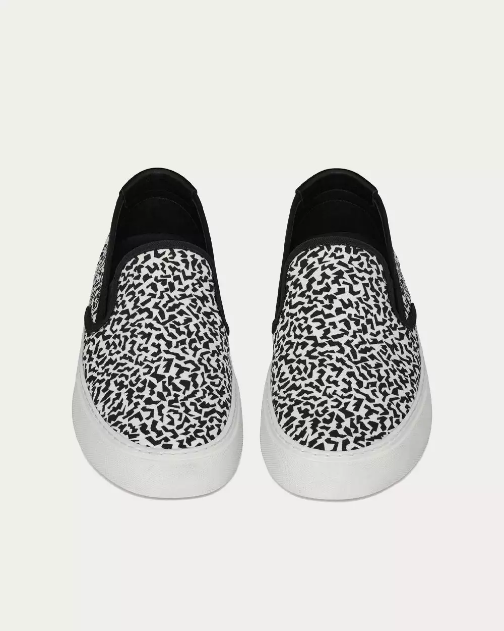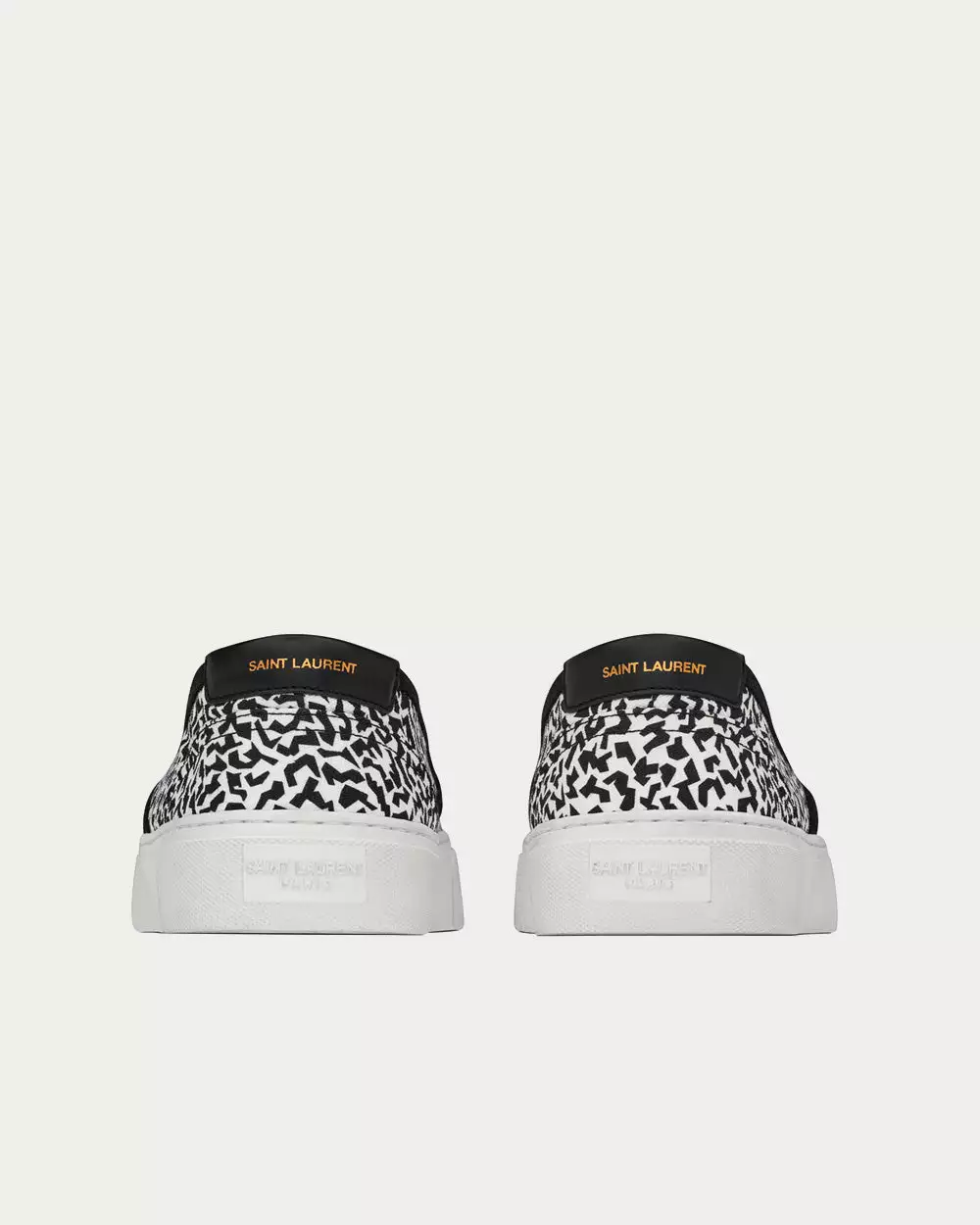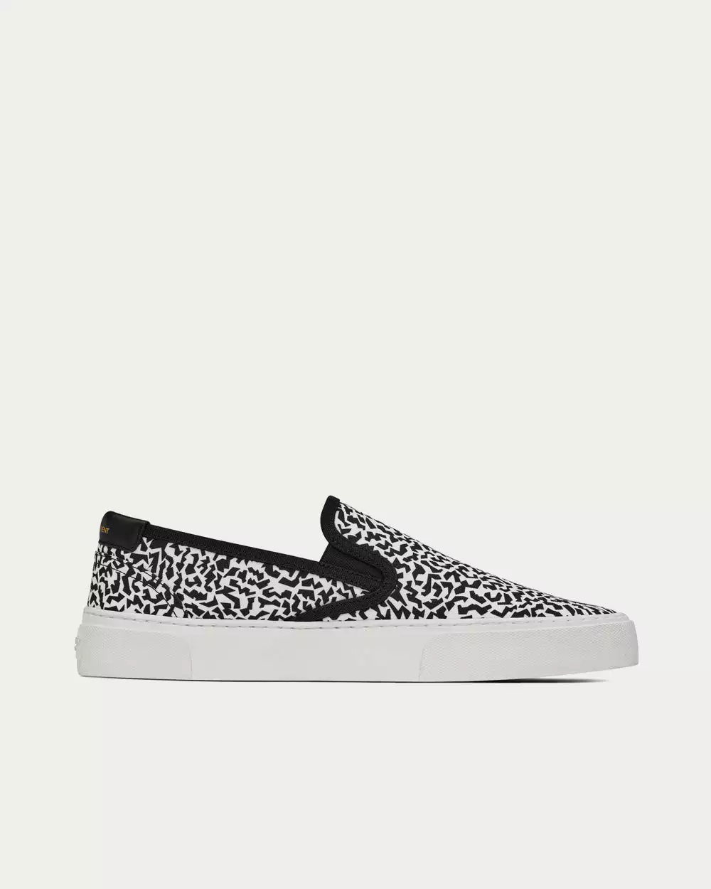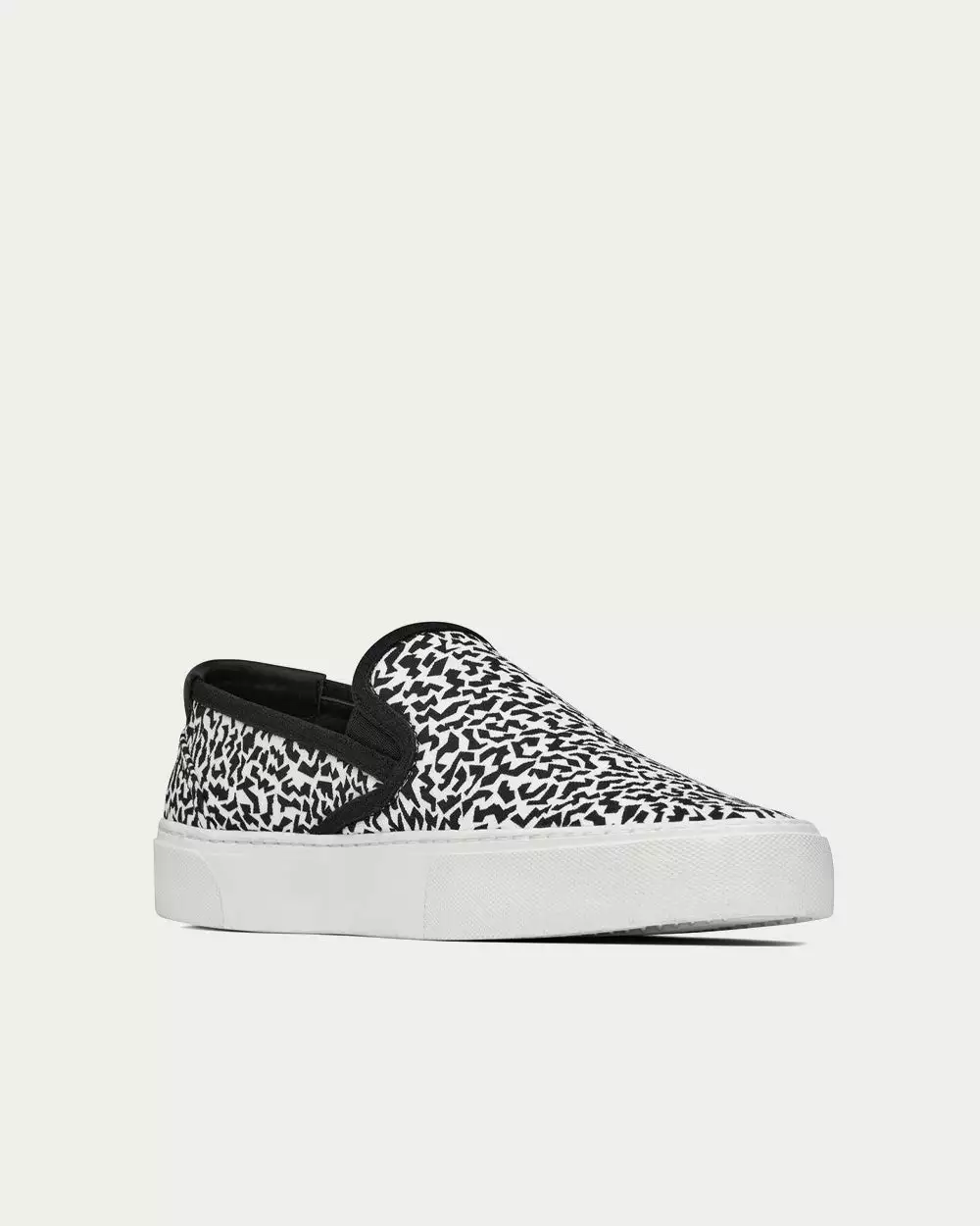 Saint Laurent Venice Sparkle Print Canvas White Slip On Sneakers