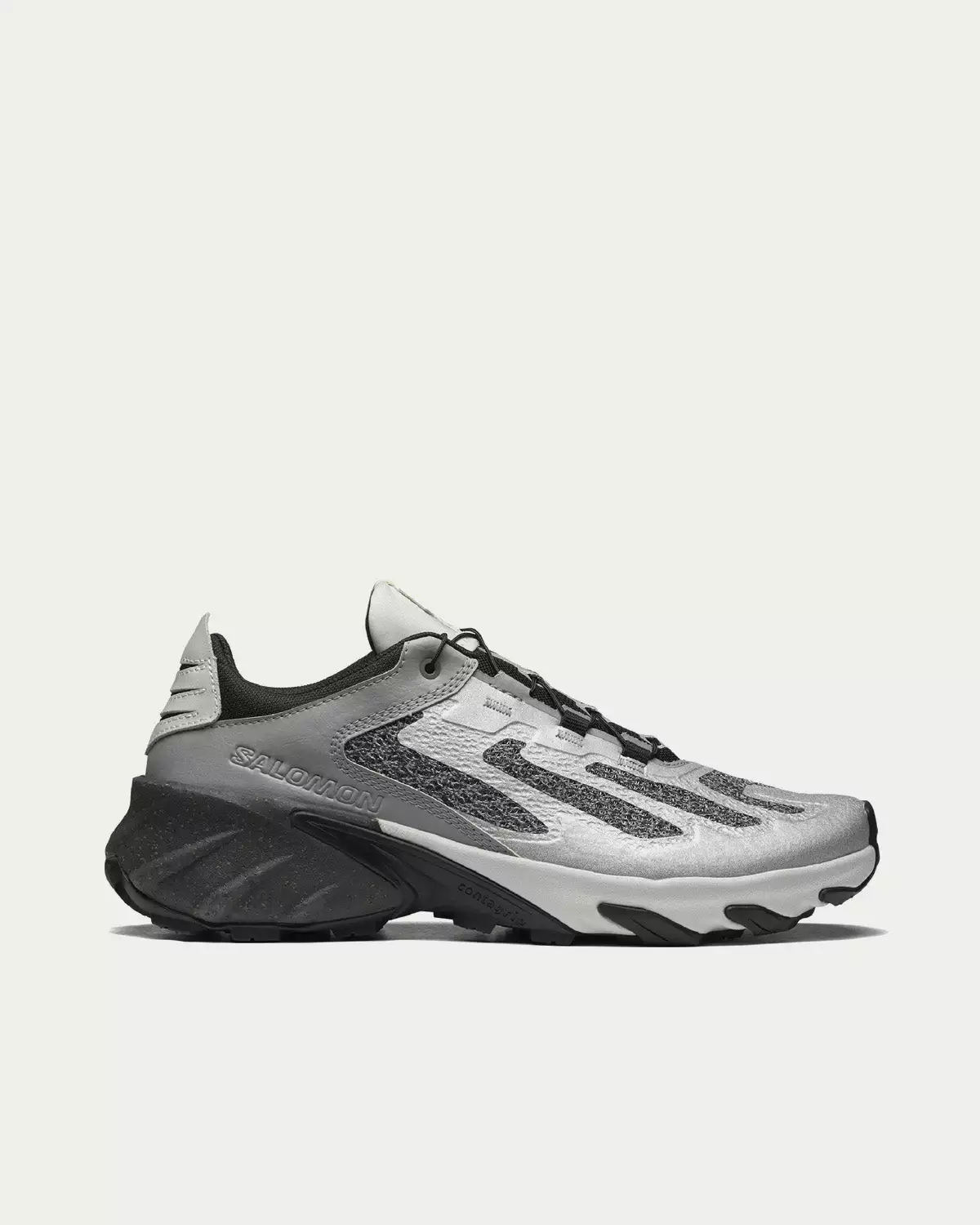 Salomon Speedverse PRG sneakers in Silver / Frost Gray / Lunar Rock colorway. Intertwining exploratory boundaries and established design codes, SPEEDVERSE PRG blurs the lines between the familiar and the pioneering. A daring, modern re-interpretation of a recognized Salomon icon, the Speedcross, this contemporary sneaker challenges the status quo, decoding the parallels between the outdoors and daily city living.