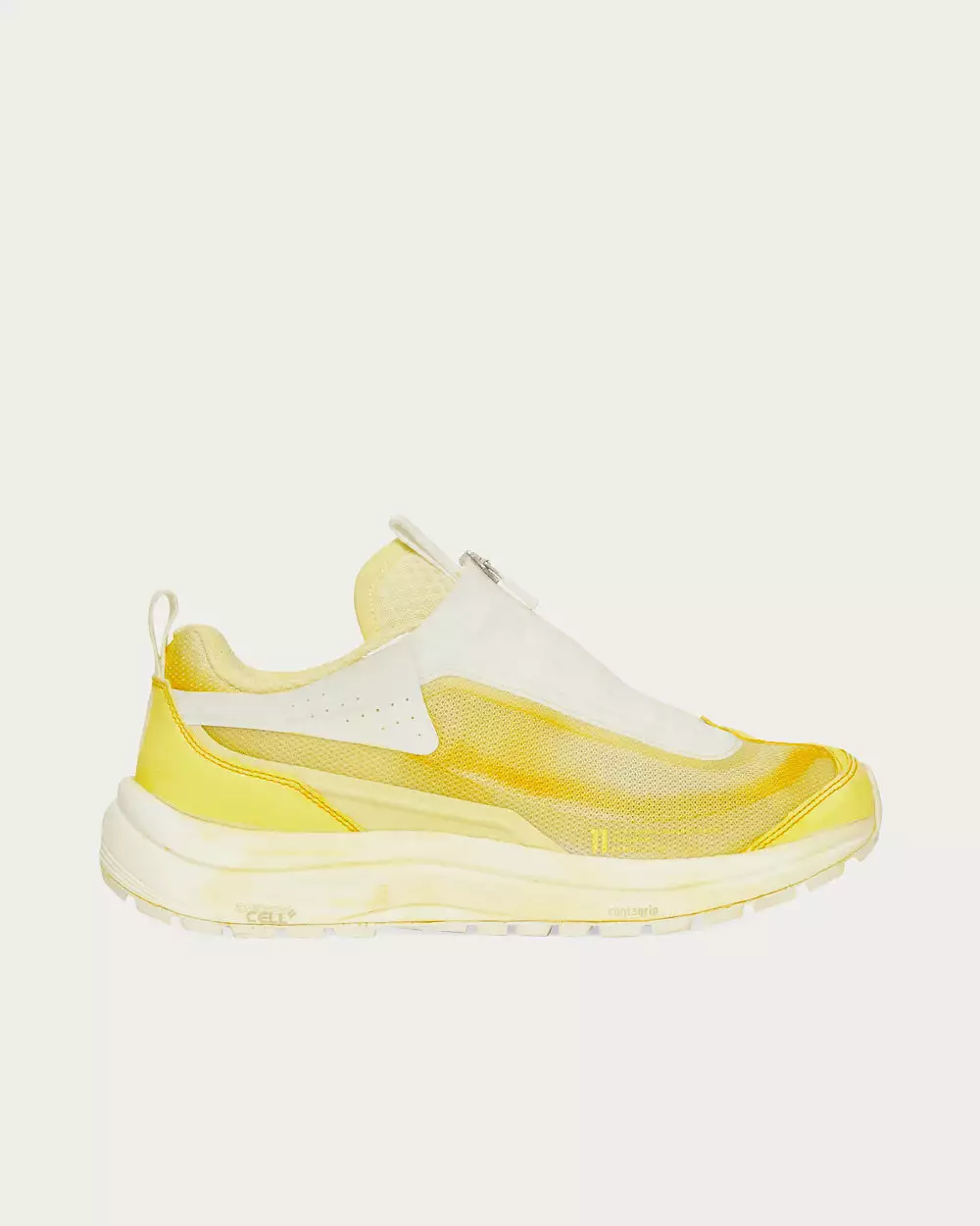 These Saberi Bamba 2 Yellow Low Top Sneakers have a Textile and Mesh Upper Dyed Treatment, Lace-Up Fastening and Zip Closure, Padded and Elasticized Collar Pull Tabs, Embossed Logo Rubber Midsole ,Treaded Rubber CONTAGRIP® Outsole.