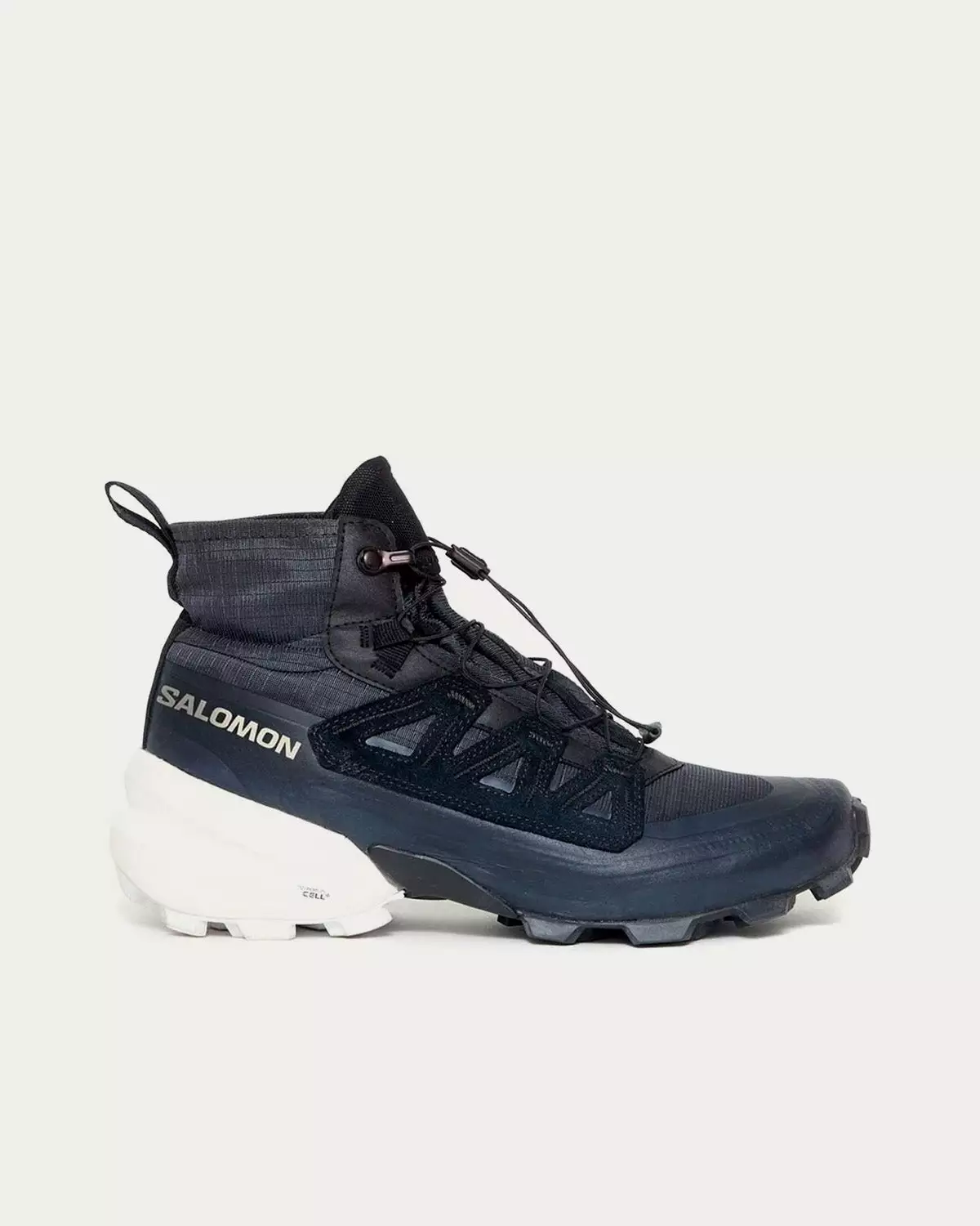 MM6 Maison Margiela x Salomon Cross High sneakers fuse a performance sensibility with a directional aesthetic. With a redesigned lug and block heel, the defining design motif is its high-top silhouette, which echoes the Maison’s signature ‘6’ heel boot for a versatile, street-ready feel. Maximal stability can be expected with Salomon’s Sensifit quicklace technology and the snug suede and ripstop upper.