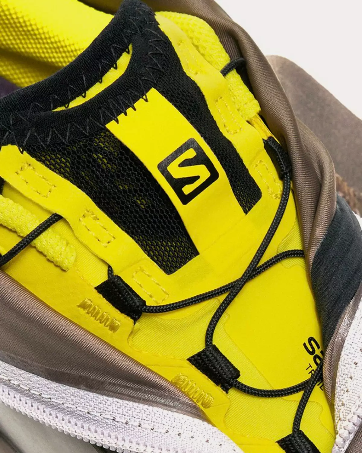 Salomon in collaboration with the cycling brand Pas Normal Studios. The XA-ALPINE 2 ADVANCED is an athletic shoe that is built to handle challenging conditions. It features a protective gaiter that offers lightweight protection in wet and cold environments, and its outsole is designed to provide traction on tricky terrain.