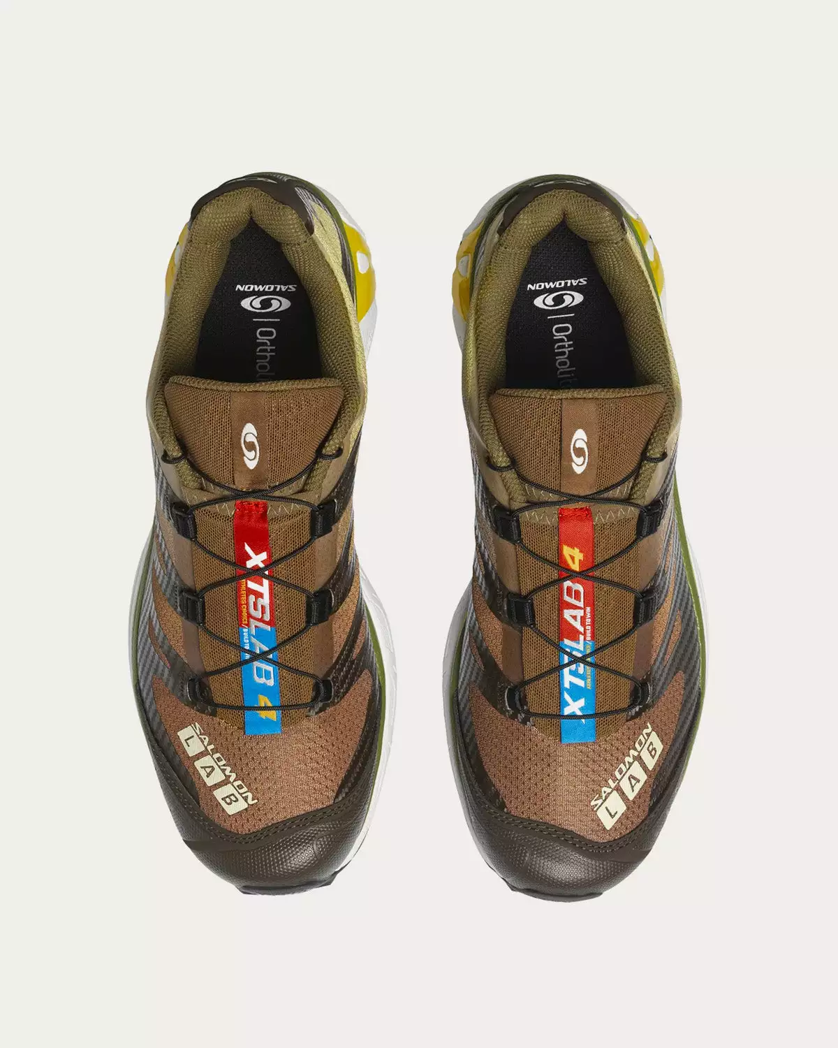 Salomon XT-4 sneakers in Delicioso / Toffee / Empire Yellow colorway. Infallibly trail-ready since conception, the XT-4 is fully equipped for all-terrain adventuring. Featuring an impressive checklist of hi-tech engineering and a progressive take on aesthetic expression.