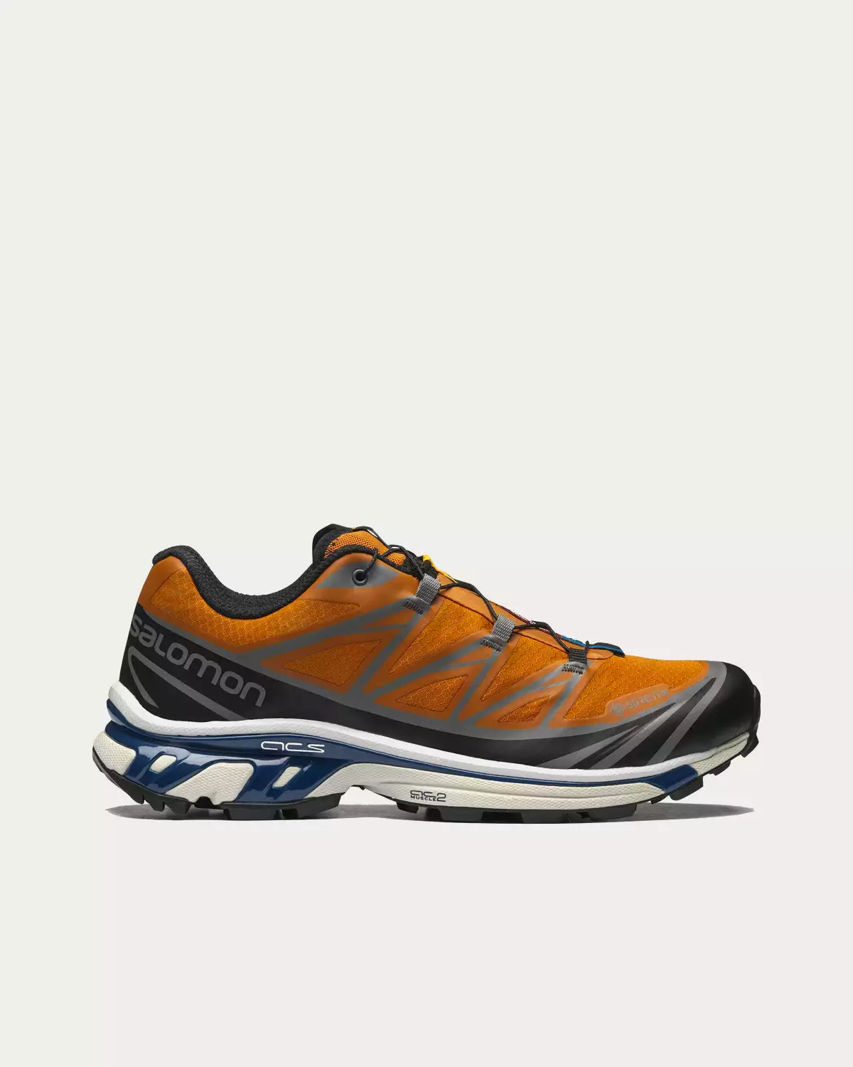 Salomon XT-6 Gore-Tex Utility sneakers in a Marmalade / Black / Navy Peony colourway. A beacon in our deep-rooted trail history, the shoe destined for functional technicity has evolved into one of our most iconic sneakers. Equipped for the harshest city conditions, XT-6 GORE-TEX UTILITY has a new PFC-free membrane and anti-debris mesh construction, as well as durable cushioning and stability no matter the distance.