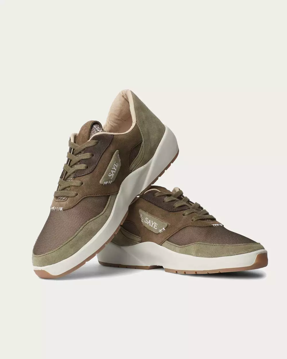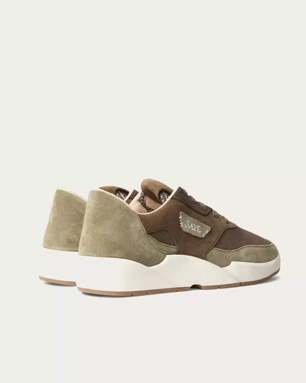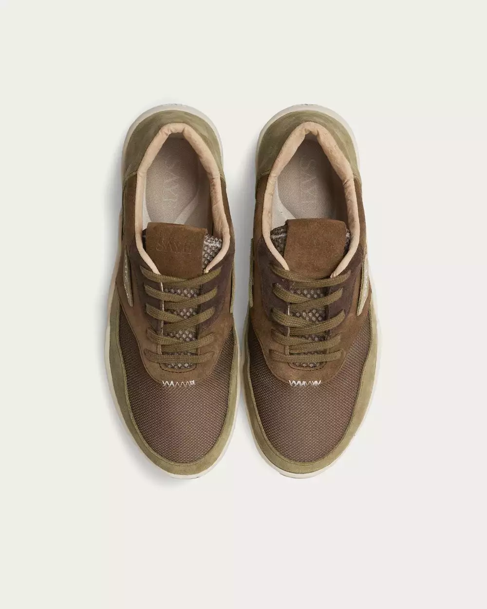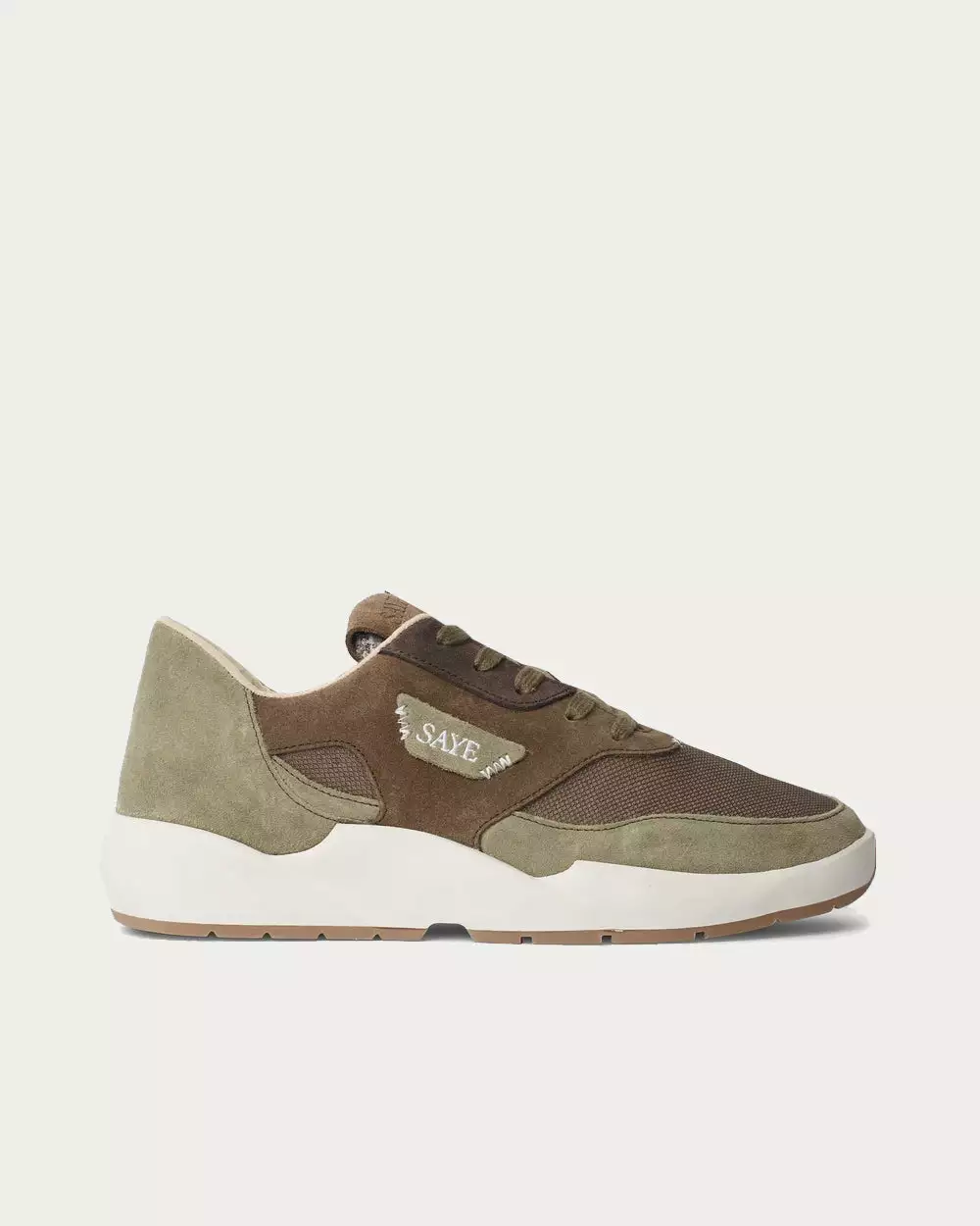 Proudly made of recycled materials in Portugal. • Upper: – Certified genuine suede. – Recycled mesh: 69% recycled polyester and 31% polyester.• Lining: 51% recycled polyester and 49% polyester.• Removable insole: 80% recycled PU foam and 20% PU memory foam.• Insole lining: 50% recycled polyester and 50% polyester.• Outsole: 70% recycled rubber and 30% rubber.• Laces: 100% certified organic cotton.• Packaging: recycled box and paper / plastic free & fully biodegradable bag.